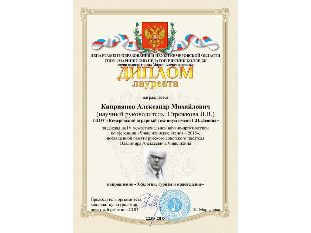 VIII Всероссийский Фестиваль творческих идей профессиональной направленности собрал самых талантливых и амбициозных участников со всей страны. Студенты Кемеровского аграрного техникума имени Г.П.Левина показали отличные результаты: Диплом за второе место завоевала Подробнее …