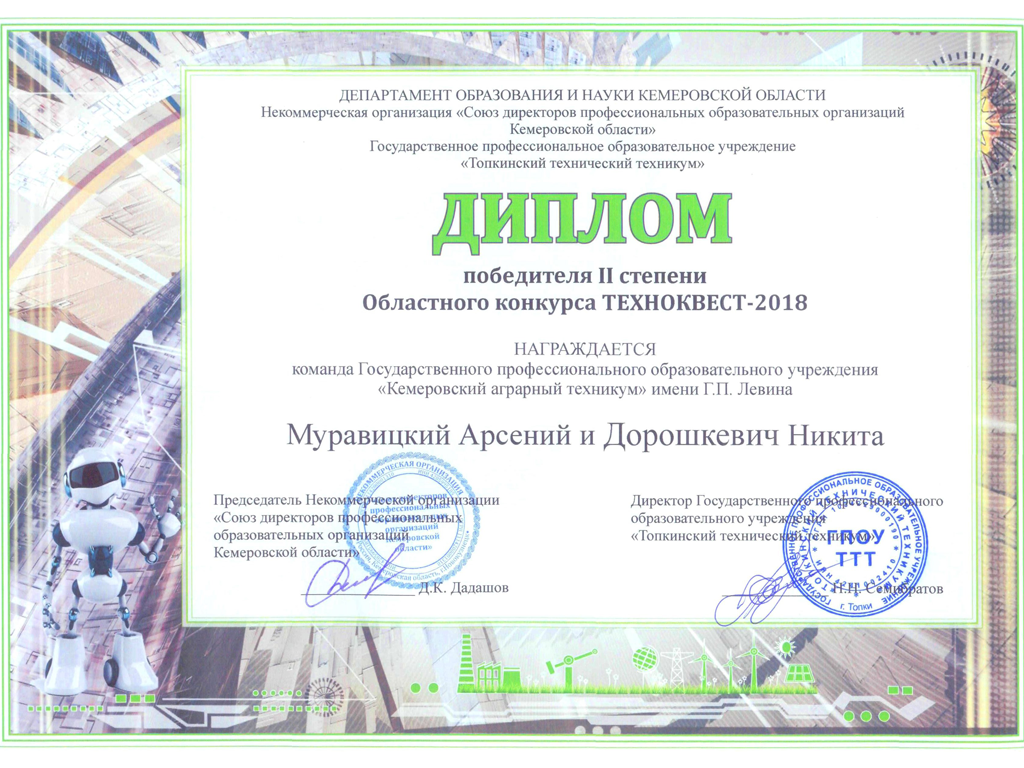 Преподаватели Кемеровского аграрного техникума Курмашев Никита Александрович и Миронова Анастасия Валерьевна приняли участие в методической конференции для педагогических работников «Практико-ориентированное обучение», которая состоялась 4 декабря 2025 г. на базе Кемеровского Подробнее …
