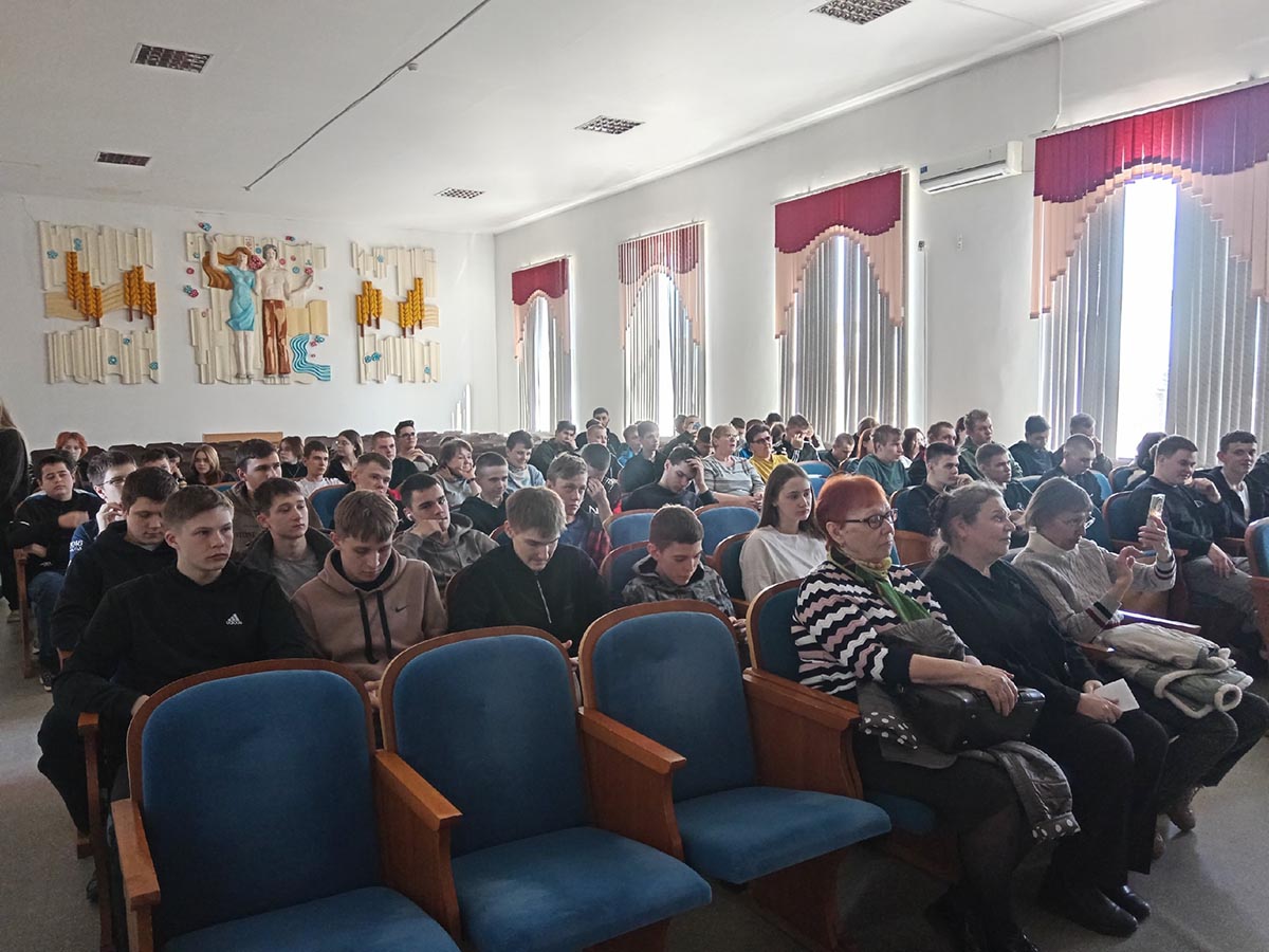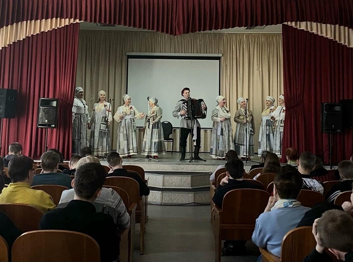 На сцене актового зала техникума звучали знаменитые военные песни, ставшие символами надежды и мужества: «Катюша», «Солнце скрылось за горою», «На опушке леса», «Плачет берёза». Эти музыкальные произведения напомнили всем о мужестве и стойкости нашего народа в трудные времена.