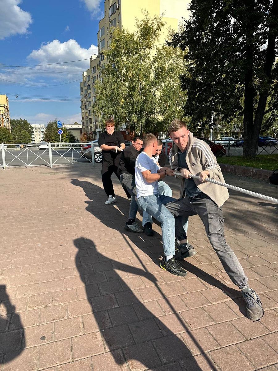 После зарядки желающие смогли попробовать себя в поднятии гири, а кульминацией спортивной части Дня Трезвости стало перетягивание каната.