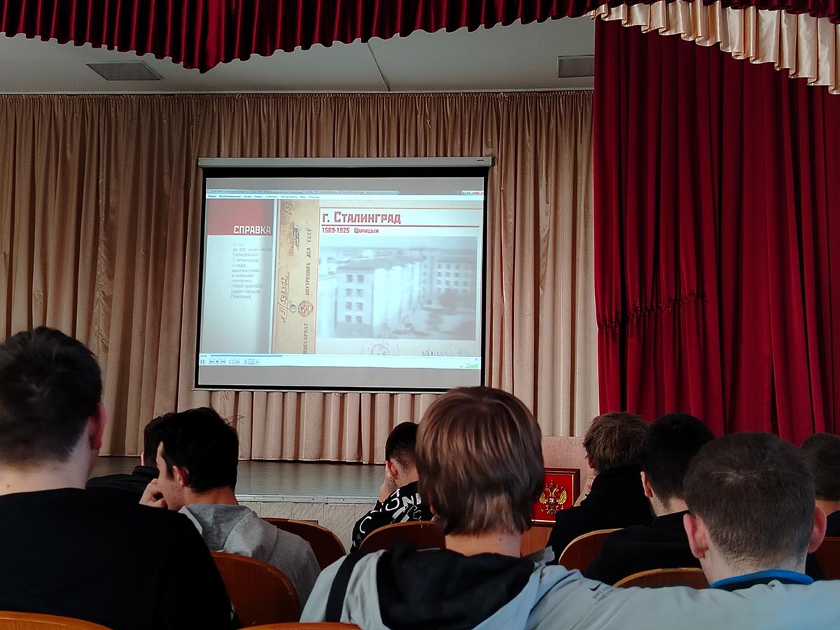 Сегодня, 4 февраля 2026 года, студенты Кемеровского аграрного техникума им. Г.П.Левина стали участниками кинолектория – “Документальный фильм о событиях Великой Отечественной войны «Великая война. Сталинград» 7 серия, русские фильмы, военное кино (2010 – 2012 годы, 49 мин.).
