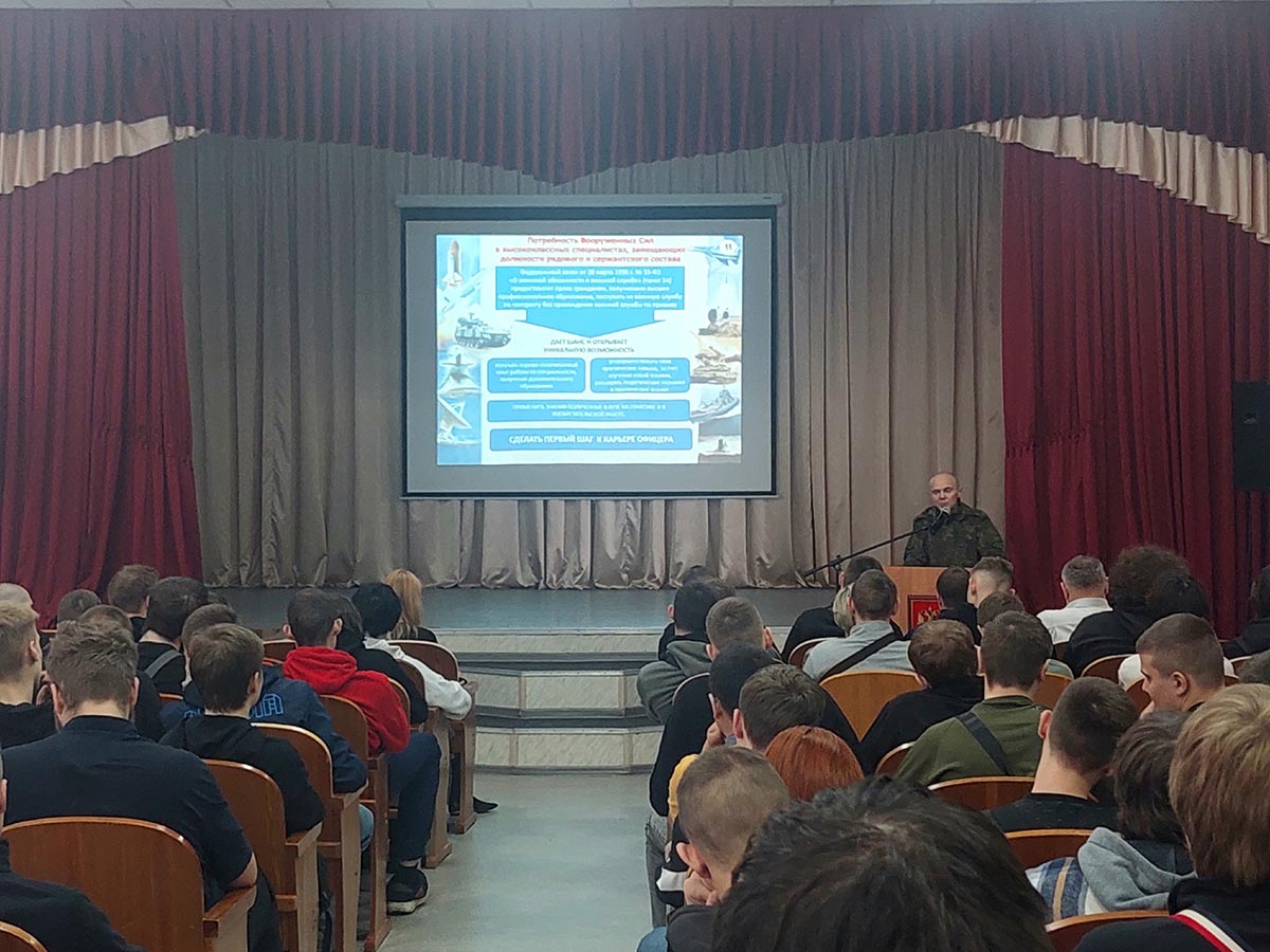 26 марта 2026 года в Кемеровском аграрном техникуме прошла встреча студентов старших курсов с представителями военкомата, которые рассказали о войсках беспилотных систем (ВБС, ВБпС)