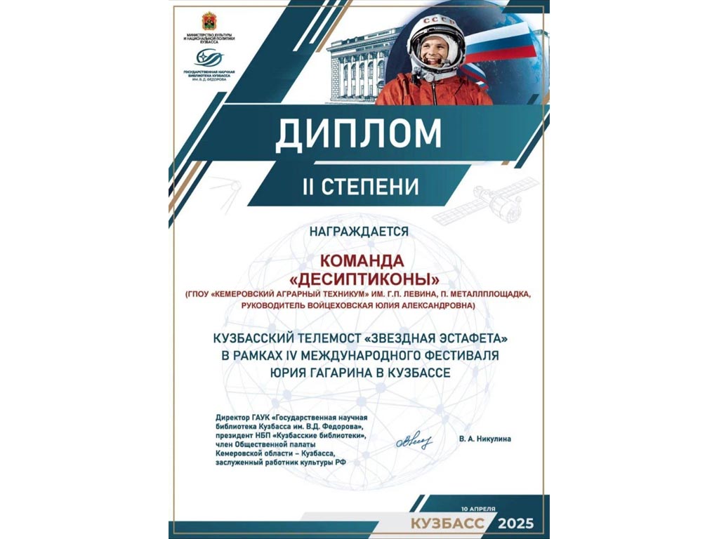 Студенты Кемеровского аграрного техникума им.Г.П.Левина приняли участие во II очном этапе квиза «Мы — против коррупции»! 9 декабря 2025 года команда первокурсников группы Э251 : Влад Танков, Саша Матвеенко, Сергей Менджул Марсель Рахмиджанов вместе с преподавателем Бек А.Е. сразились Подробнее …