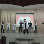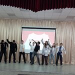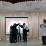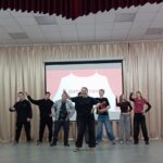 Сегодня они окунулись в мир театра и попробовали себя в роли актёров, сценаристов, режиссёров. Участники мероприятия разделились на 4 команды и выполнили три задания: